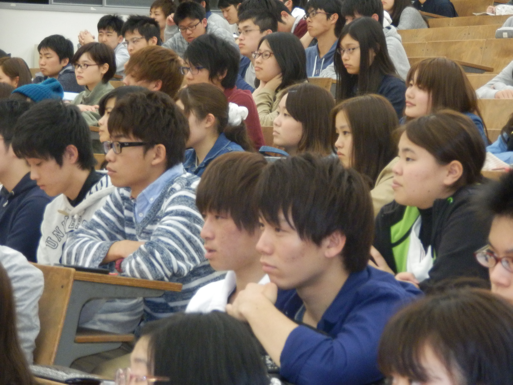 取材中通りかかった、元気いっぱいの先生とフレッシュな学生たちでした。