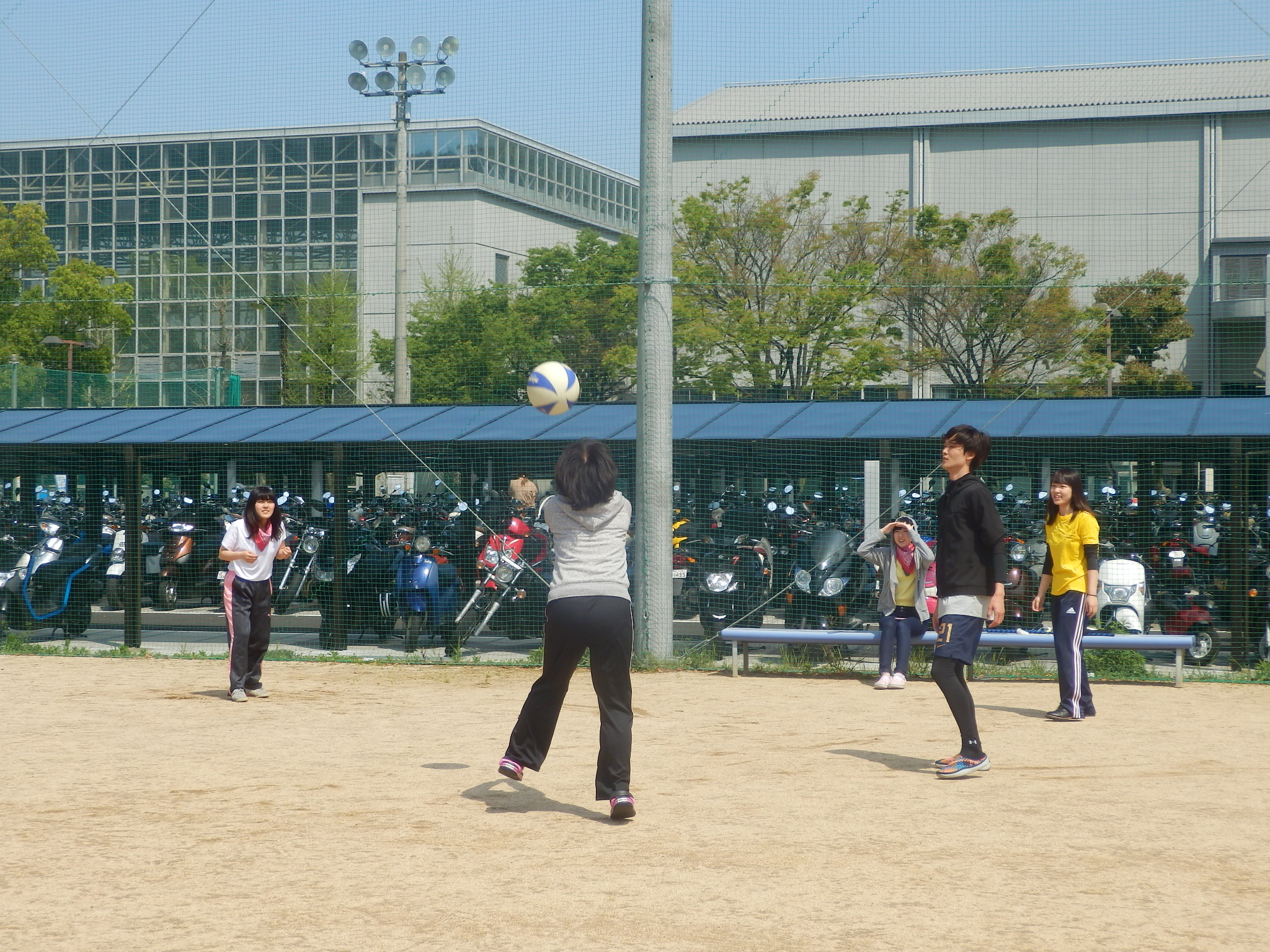 14日はとても天候もよくグラウンドでは、薬学部の学生がソフトバレーボールの練習をしていました。親善の大会があるようです。いい交流会ができますように!!