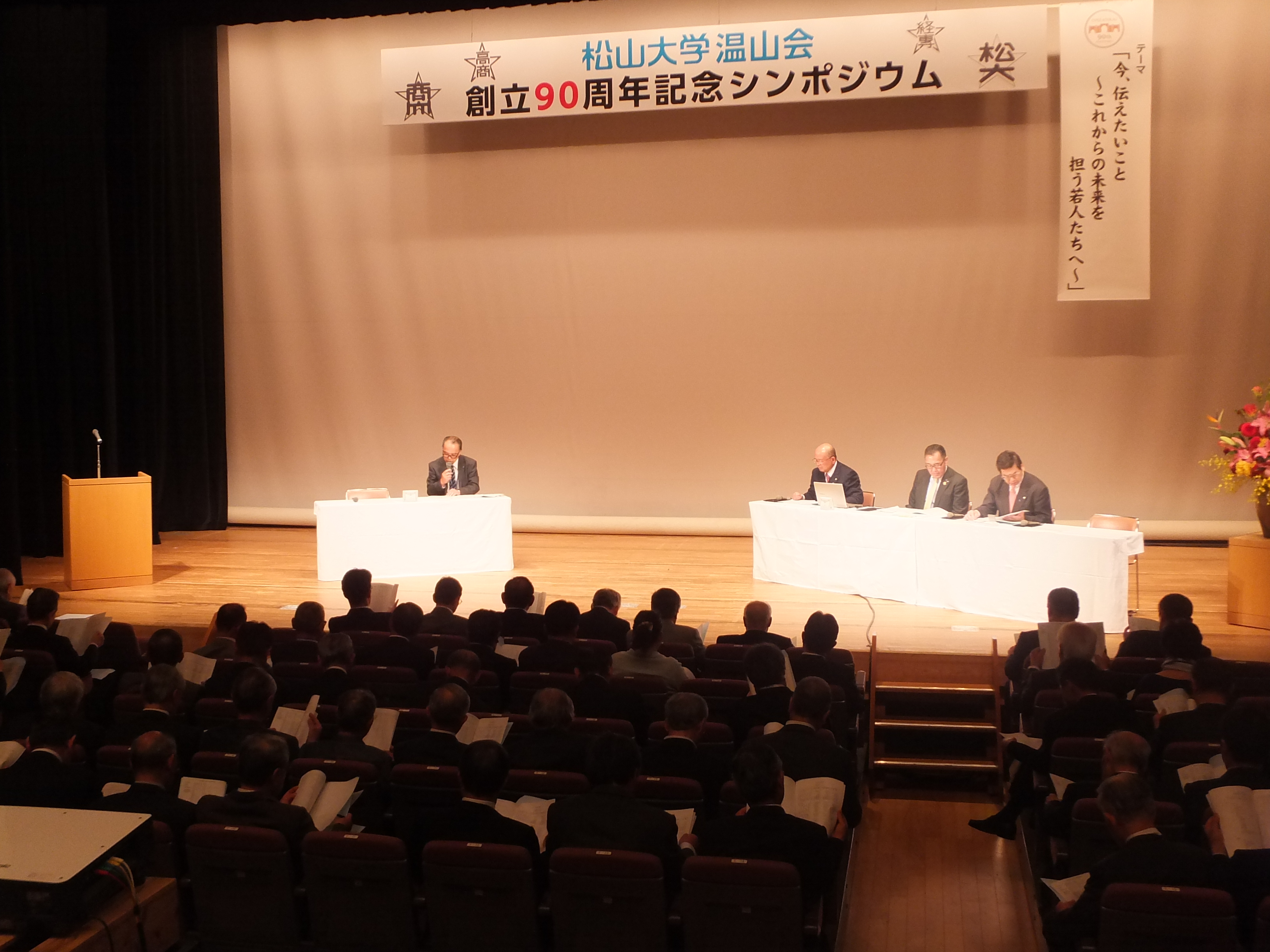 平成29年度温山会理事会が平成29年4月21日(木)16:30から、会長をはじめとして本部顧問・副会長・常任理事・監査人・理事の総勢153名が出席のもと、学内のカルフールホールで執り行われた。前日に開催された温山会常任理事会で審議された議題について当理事会に付議し、承認を受けた上で平成29年度の温山会の諸事業が始動するが、当日に審議された議題・報告事項は下記の通り。
