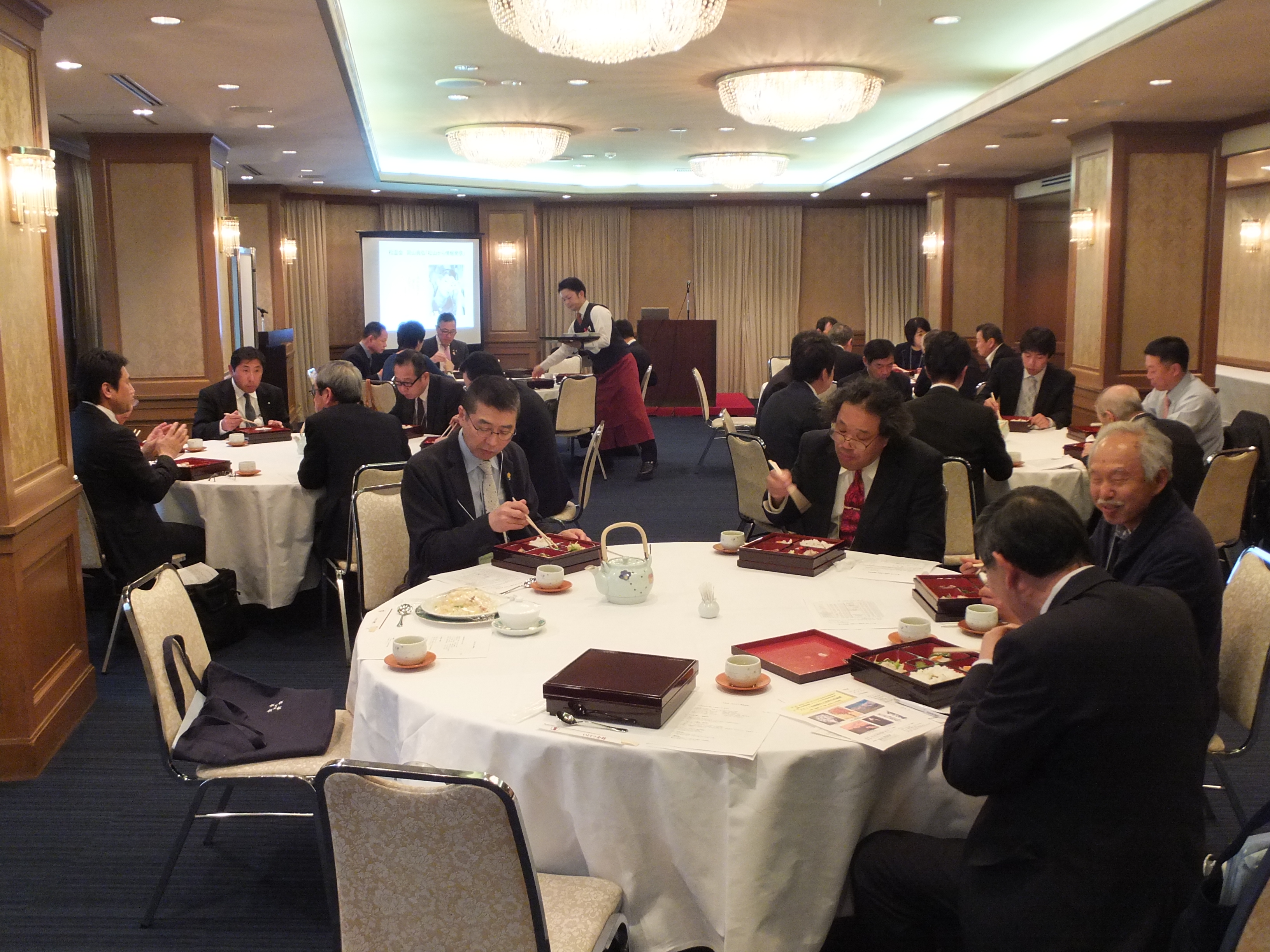 秋川支部長から、翌日に開催される温山会90周年記念シンポジウムの紹介を交えた開会の挨拶ののち、会食と会話を楽しんだ。