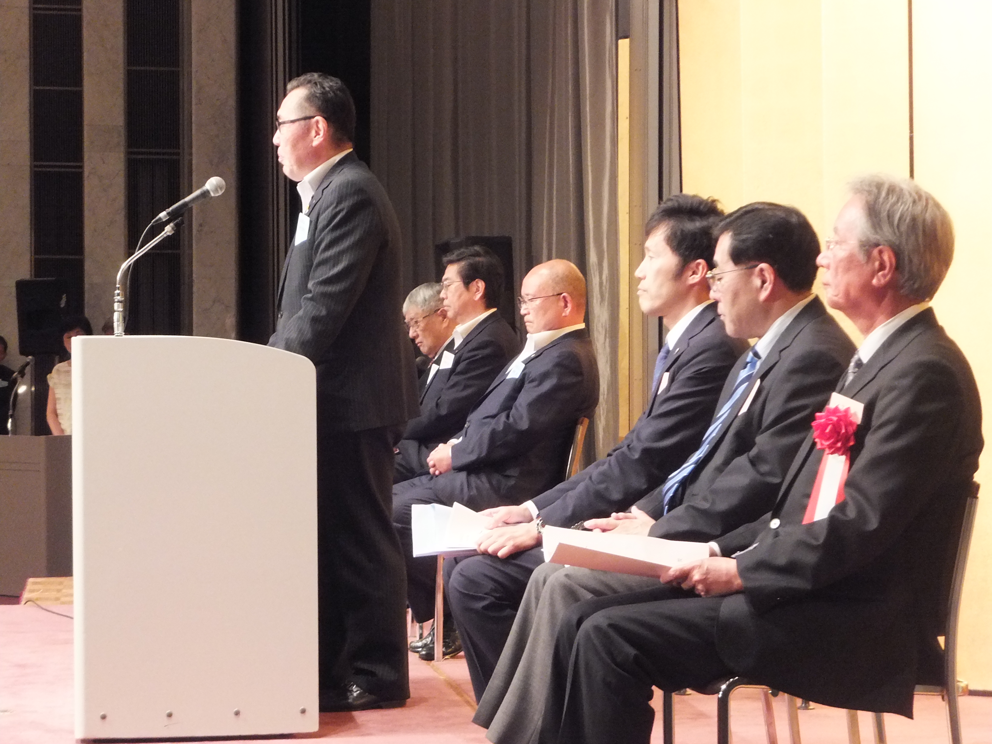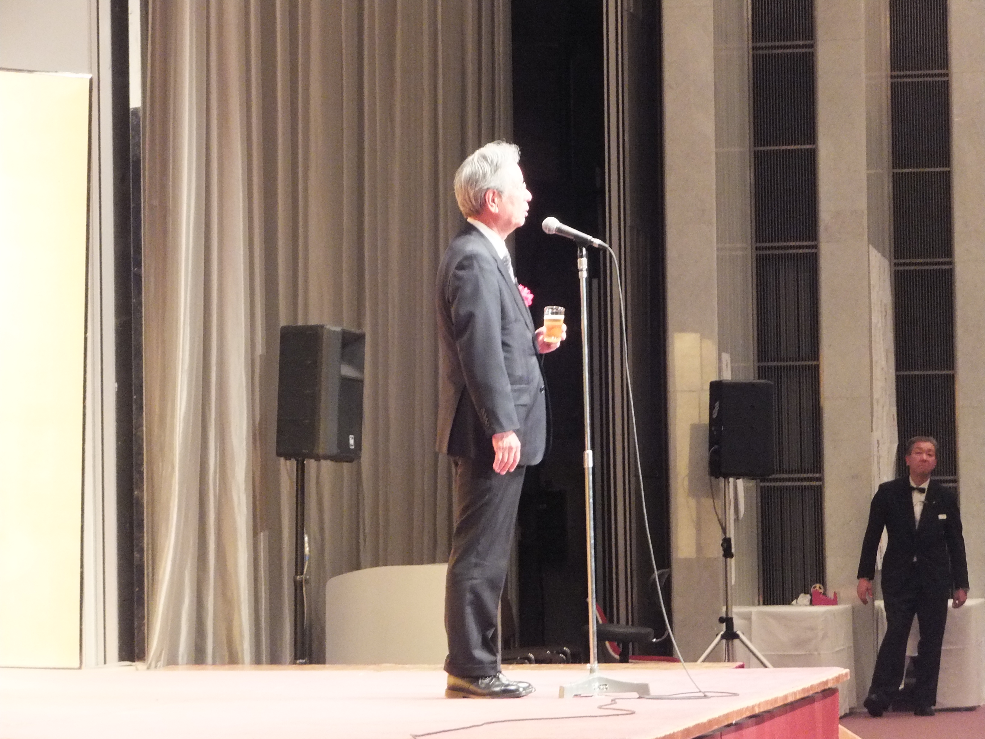 続いて、来賓の方と温山会本部役員・支部長紹介の後、懇親会へと移行したが、乾杯発声は本日功労賞を受賞された高松支部の竹田省二氏にお願いし、力強い乾杯の音頭で懇親会がスタートした。
