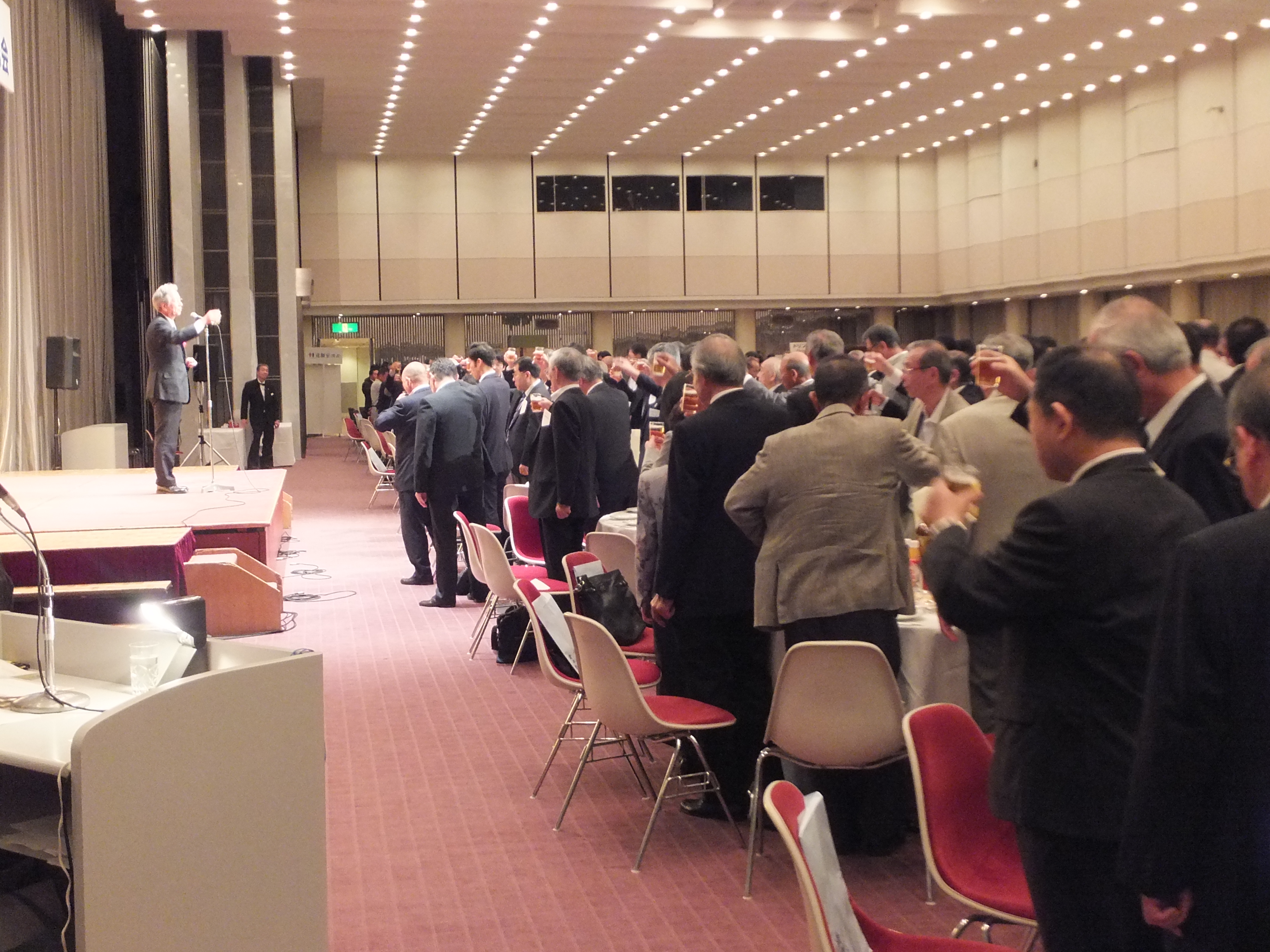 懇親会は広大な会場のいたる所で盛り上がりを見せ、美味しい料理や酒に舌鼓をうつ方々、久々の再会を喜び合う姿や初対面で名刺交換をする風景等があちこちで見られた。