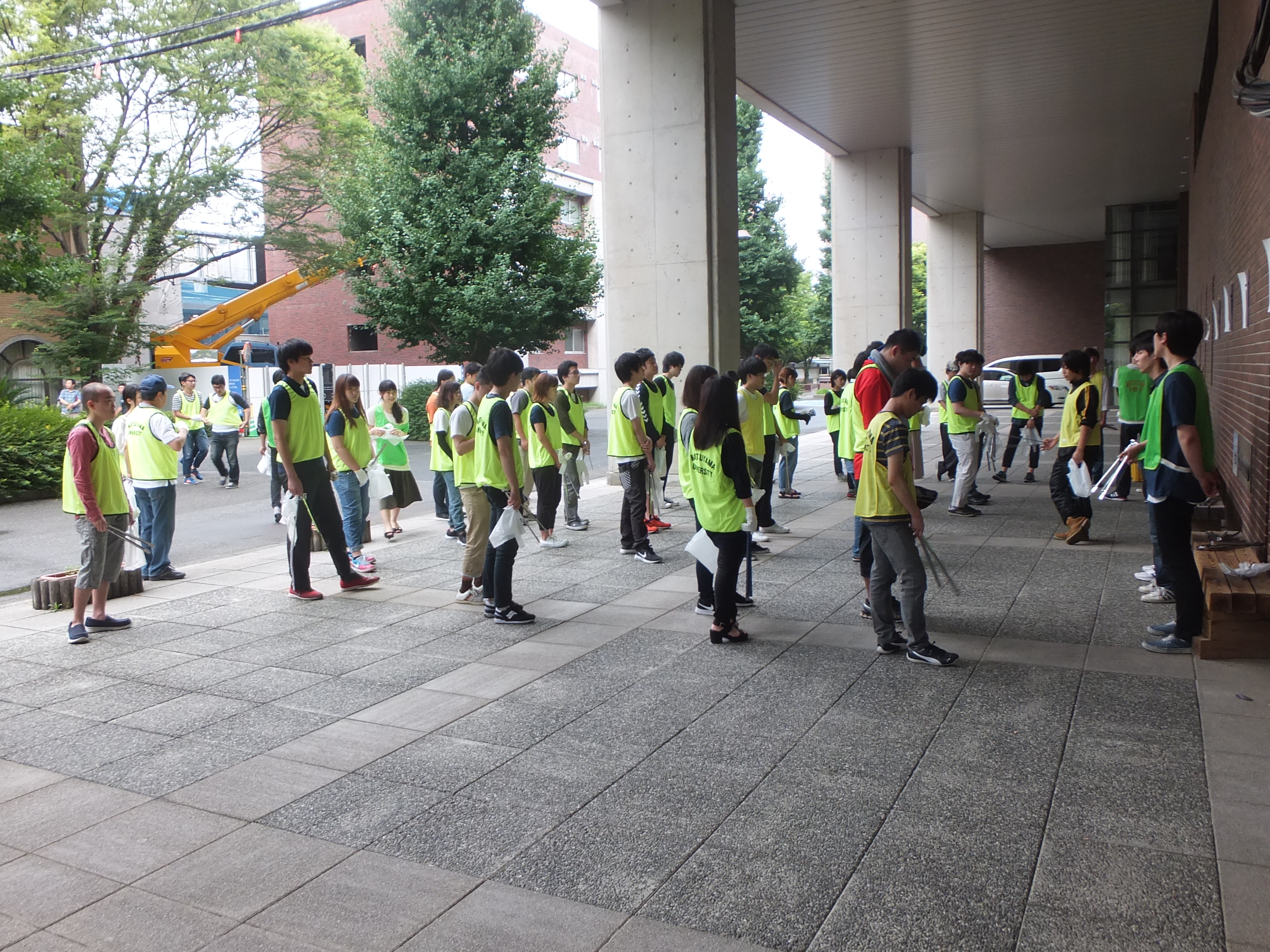 当日は開始前の突然の雨により開催が危ぶまれたものの、開始時間には雨も上がり、4班に分かれてそれぞれの担当区域のクリーンアップに汗を流した。