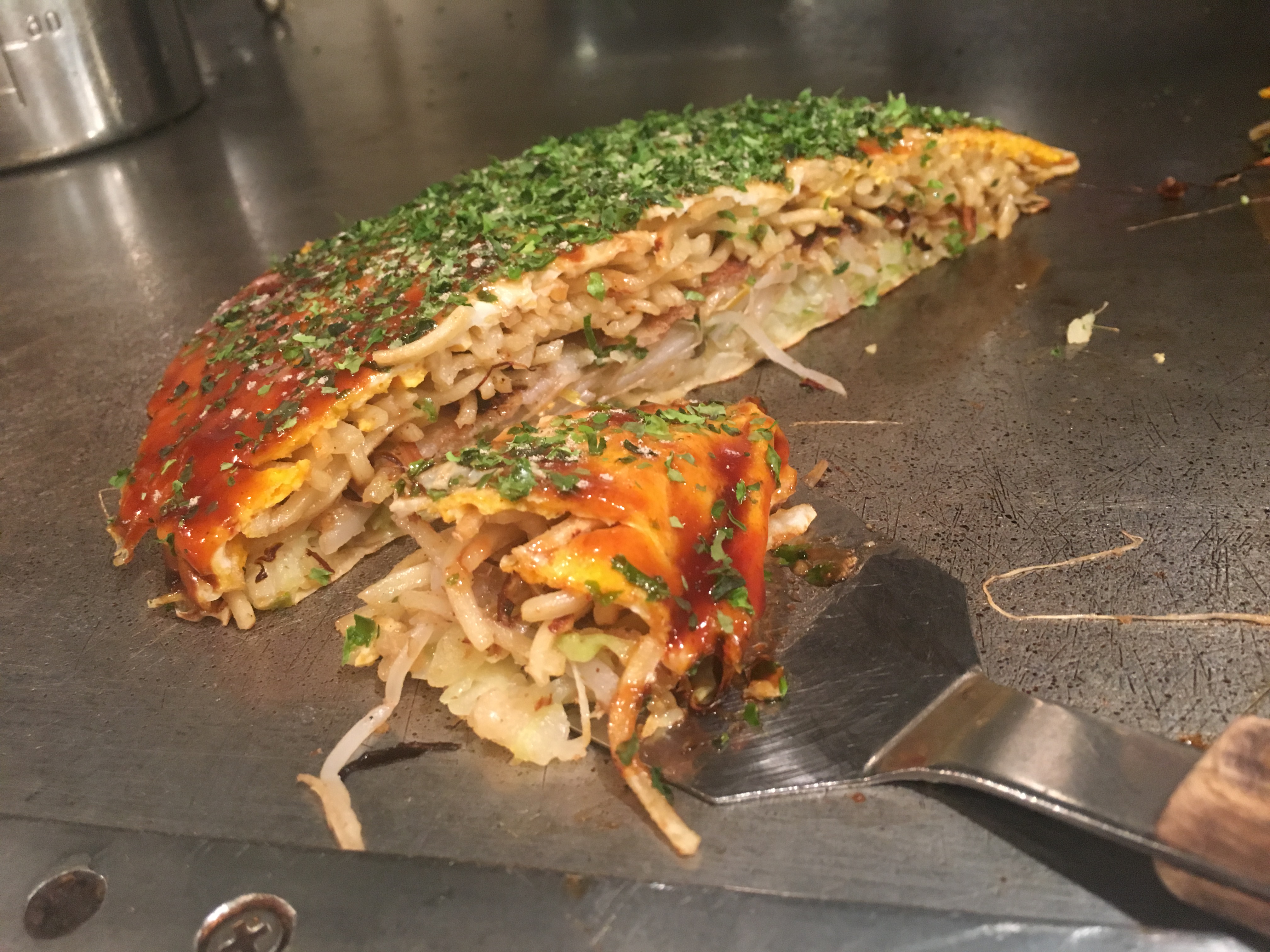 そして、時間の許す方が最後は恒例のお好み焼き「ふみちゃん(オーナー:尾上先輩)」に集合。たくさん飲んで食べた上、深夜なのに、いくらでも食べられるのは美味しいから。繁華街のど真ん中の立地で人気店ですので会員の皆様、広島にお越しの際は是非ご賞味下さい。