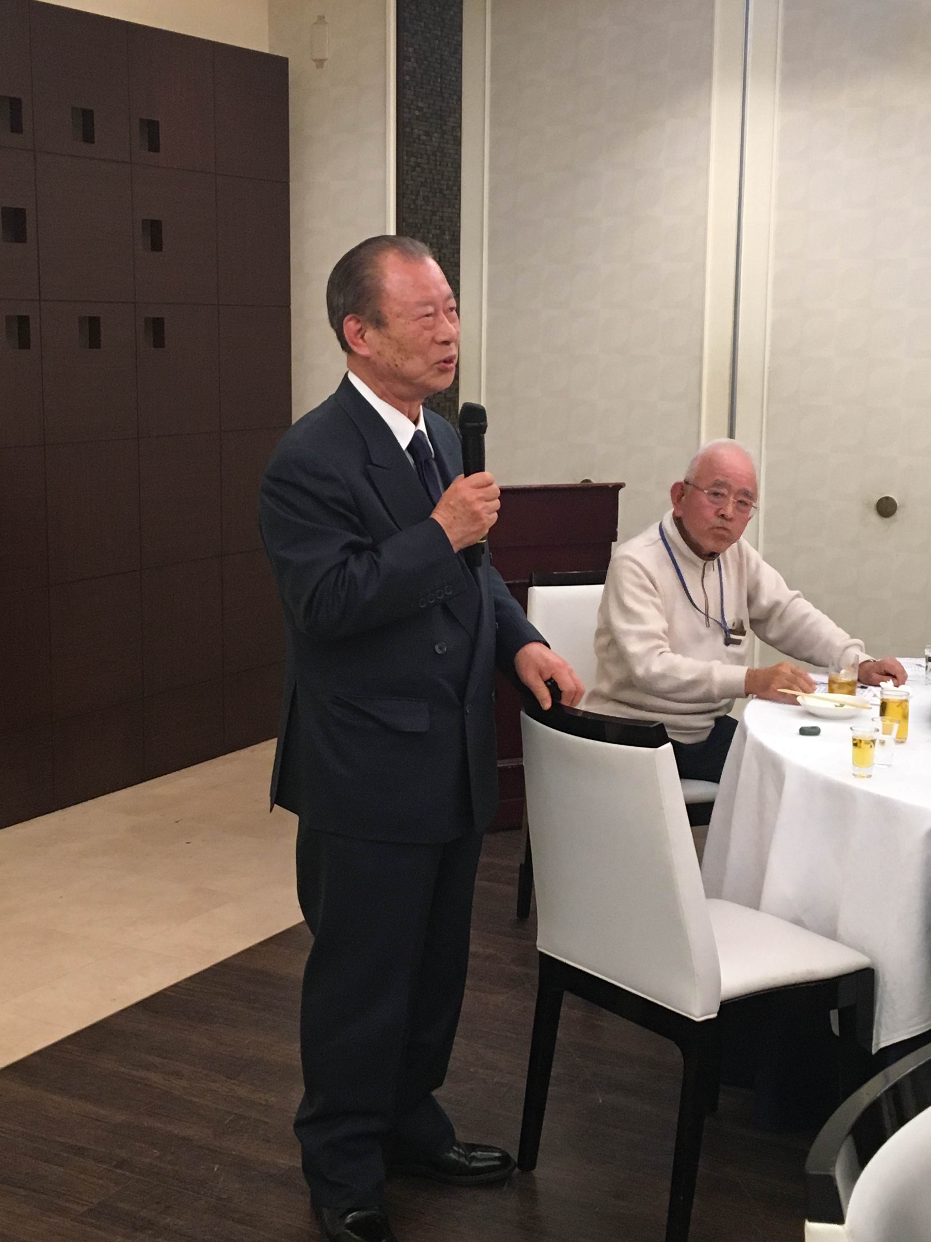 会も終わりに近づいた頃、渡辺先輩より前温山会広島支部長の信國先輩が他界されたという報告があり、参加者全員で黙とうを捧げました。