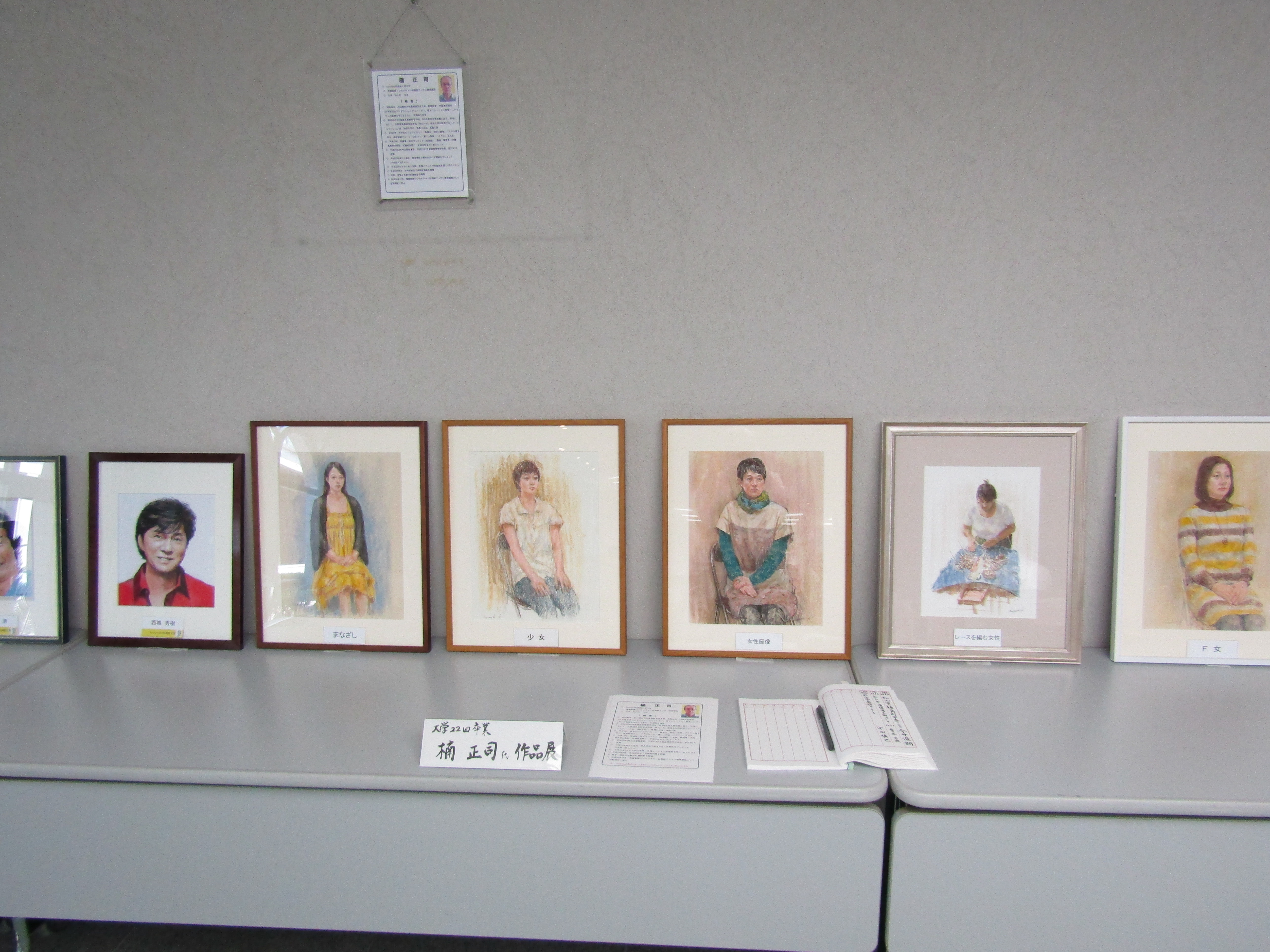 今回は多数の人物パステル画と著名人の似顔絵をお借りしていますので,随時作品を入替し展示を行います。期間中土日祝祭日を除く9:00~17:00で鑑賞できますので、興味のある方は温山会館へ是非お立ち寄りください。なお、「kusumasa似顔絵工房」で検索していただければ、ブログをご覧になれます。