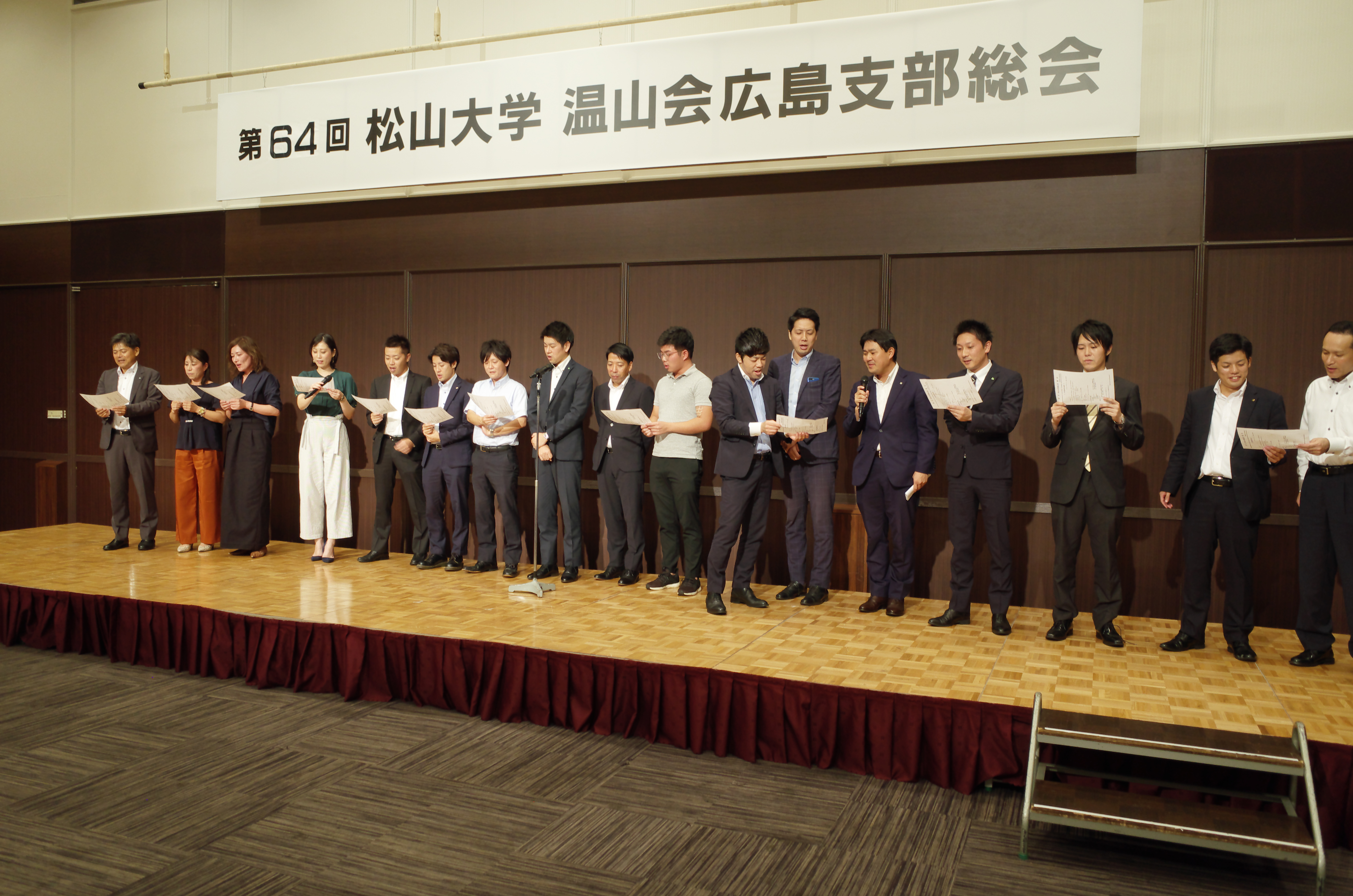 令和元年9月4日(水)にホテルメルパルク広島にて、総勢104名が参加し、松山大学温山会第64回広島支部総会・懇親会が開催されました。総会内容・開催風景については下記の通り。
