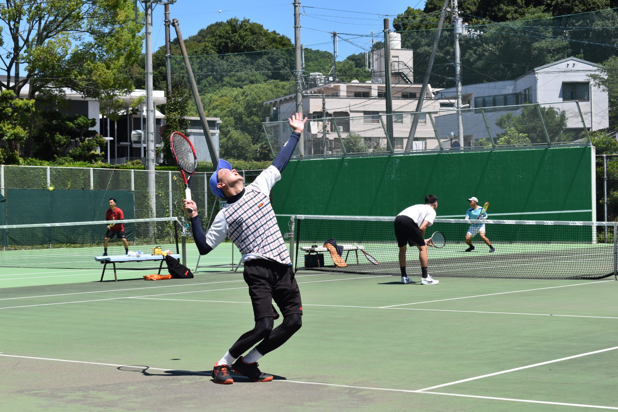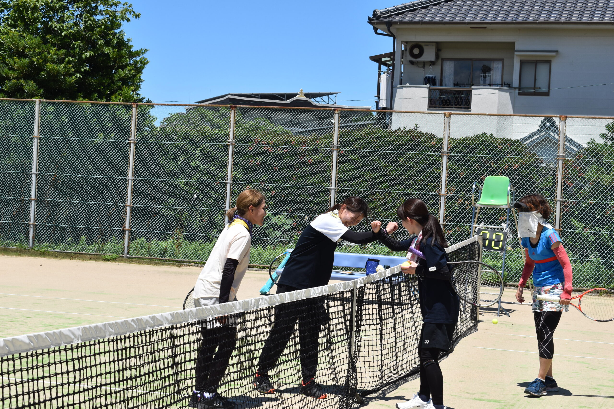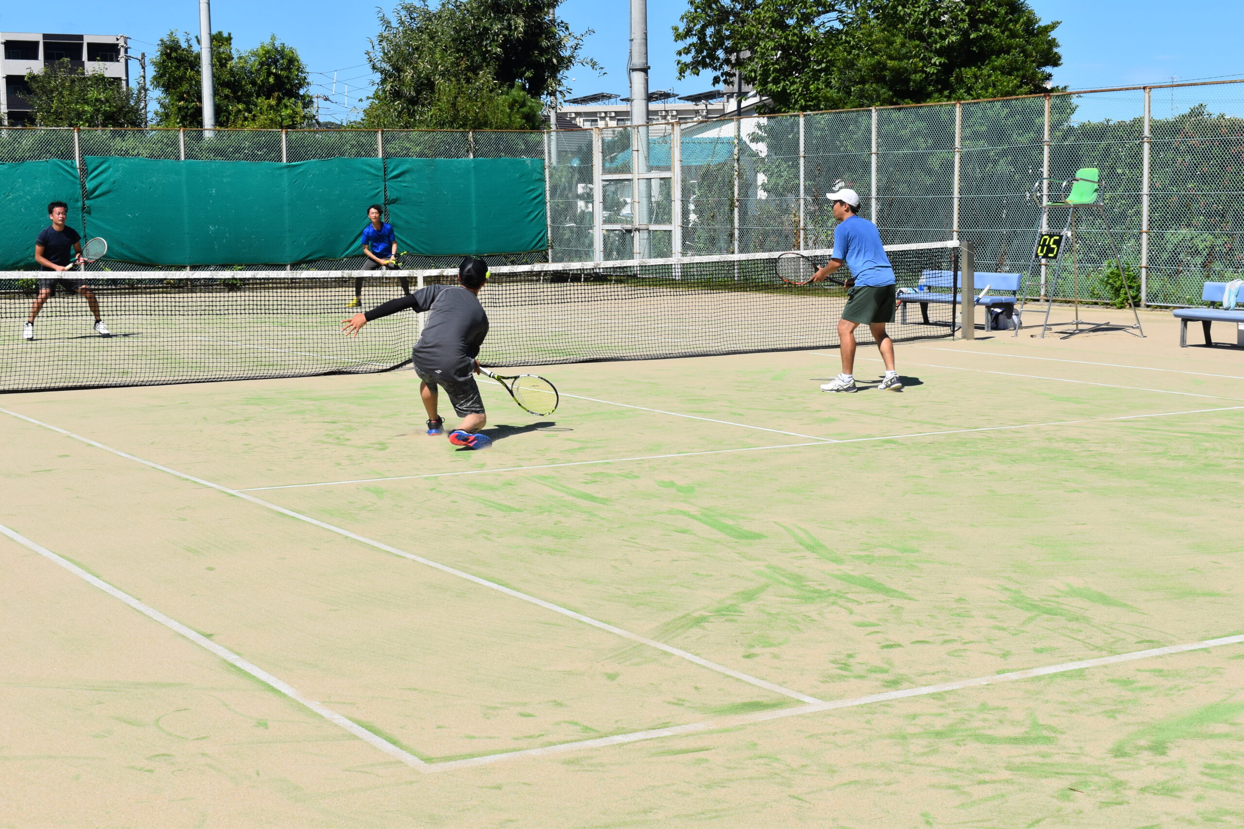 雲一つない青空から真夏の強い日差しが降り注ぐ中、参加者は暑さとも戦いながら、テニスの腕を競い合いつつ、世代を超えた交流を深めました。