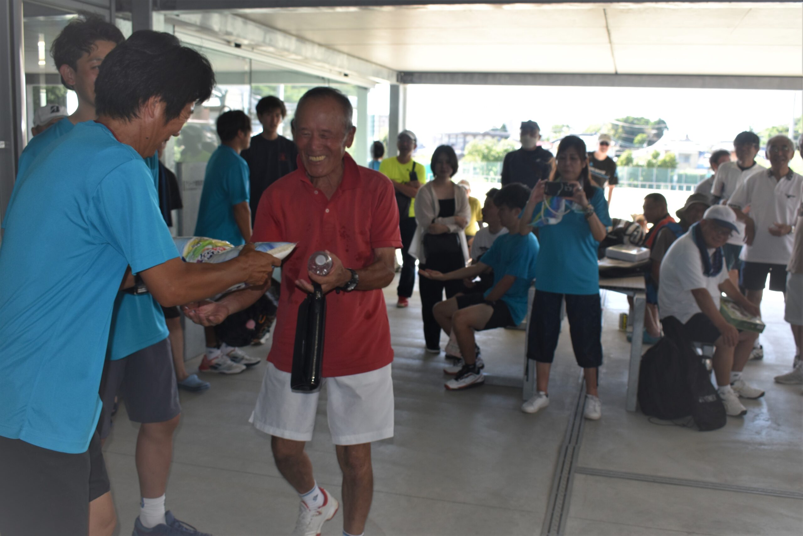 試合終了後は、各クラス優勝選手の表彰式に続いて、お米・ビール・水羊羹などの景品が当たるお楽しみ抽選会が行われ、当選者が決まるたびに、抽選会場は試合に劣らぬ盛り上がりを見せました。