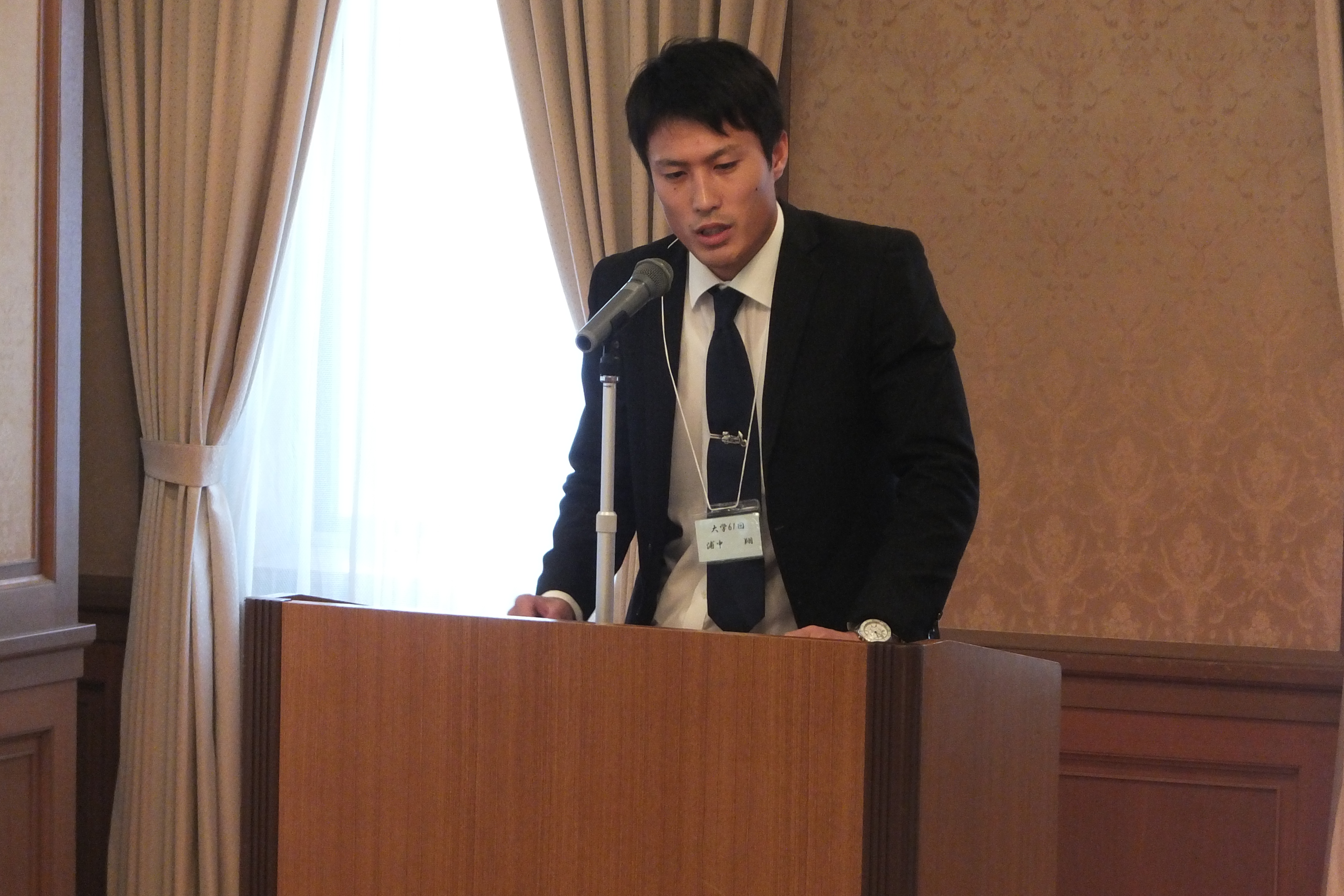 会場は皆、パンフレットを片手に和やかな雰囲気で進行し、会の終盤では、初参加の山本俊介氏(大59)