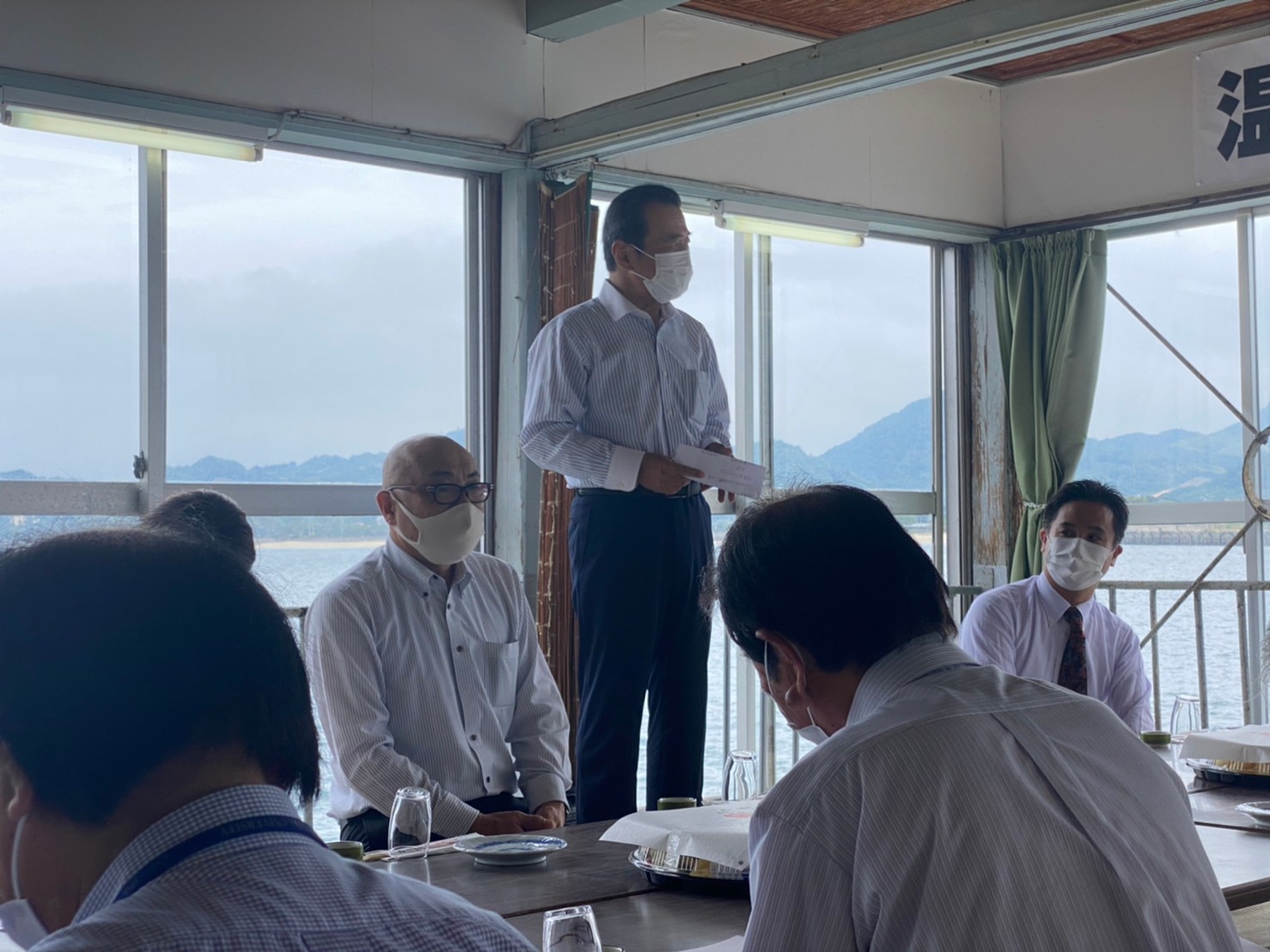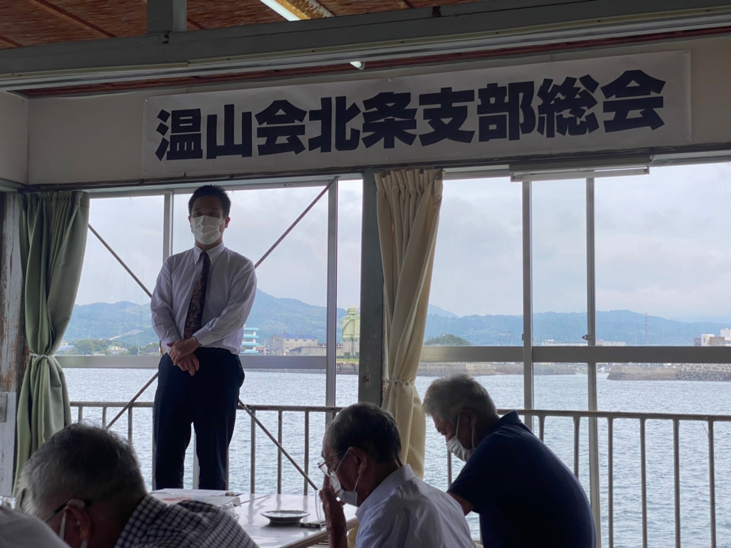 コロナ対策は徹底して行い、出席者はマスク着用、会場の太田屋鹿島店は海の上にあり、窓を空ければ心地よい海風が流れ、換気は十分な状況でのスタートになりました。