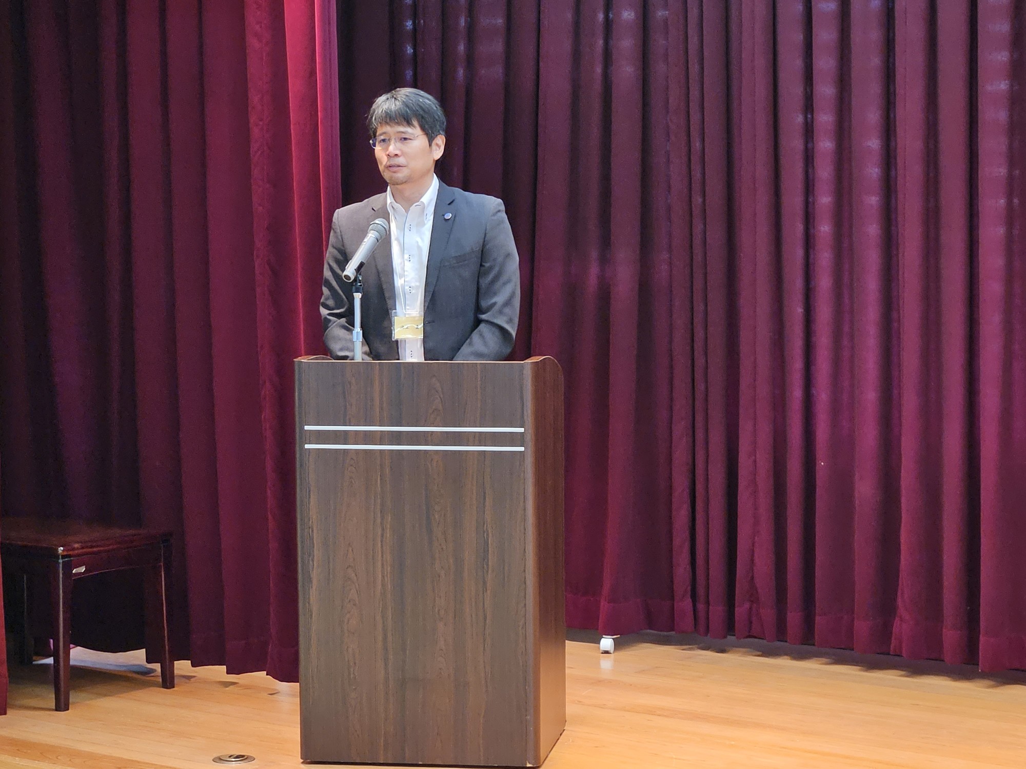 まず、今井俊朗松温会会長から「11月18日(土)に開催予定の「ホームカミングデー」の講演会では、本学のOBが出演されますので多くのご参加をお願いします。さて、本日は本学副学長の池上真人先生に『松山大学のビジョンについて』という演題でお話いただきますのでよろしくお願いします」とご挨拶がありました。