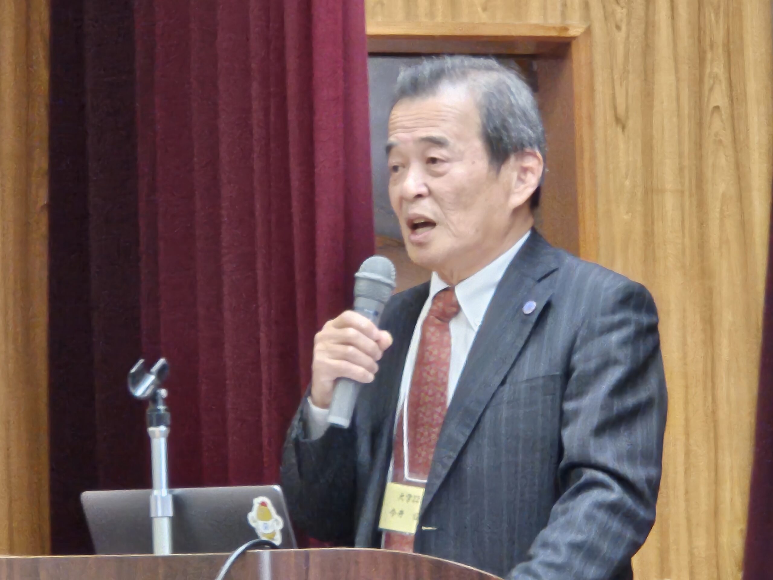 まず、今井俊朗松温会会長から「本年は松山大学創立100周年記念行事が多く開催され、皆様方にもご協力をいただき誠にありがとうございました。残すところ記念特別番組が今月30日に放映されるのでぜひご覧いただけたらと思います。また、来年1月24日には松温会の40周年記念特別例会を開催しますので是非こぞってご参加をお願いします。さて、本日は本学OGの土佐礼子氏(大48)に『マラソンが教えてくれたこと』という演題でお話いただきますのでよろしくお願いします」とご挨拶がありました。