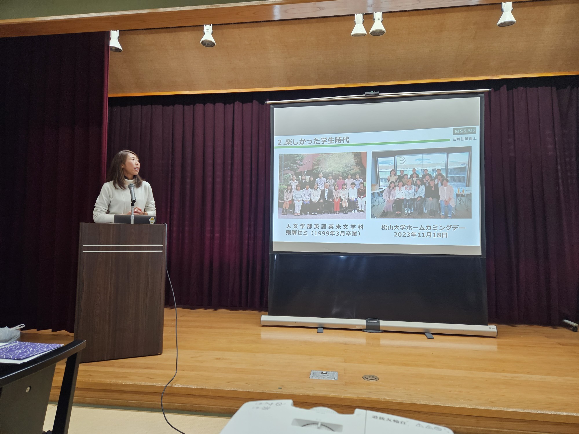 現在、三井住友海上火災保険女子陸上競技部に松山大学の卒業生3名が入部していますので、今後も応援をよろしくお願いします」とお話いただきました。