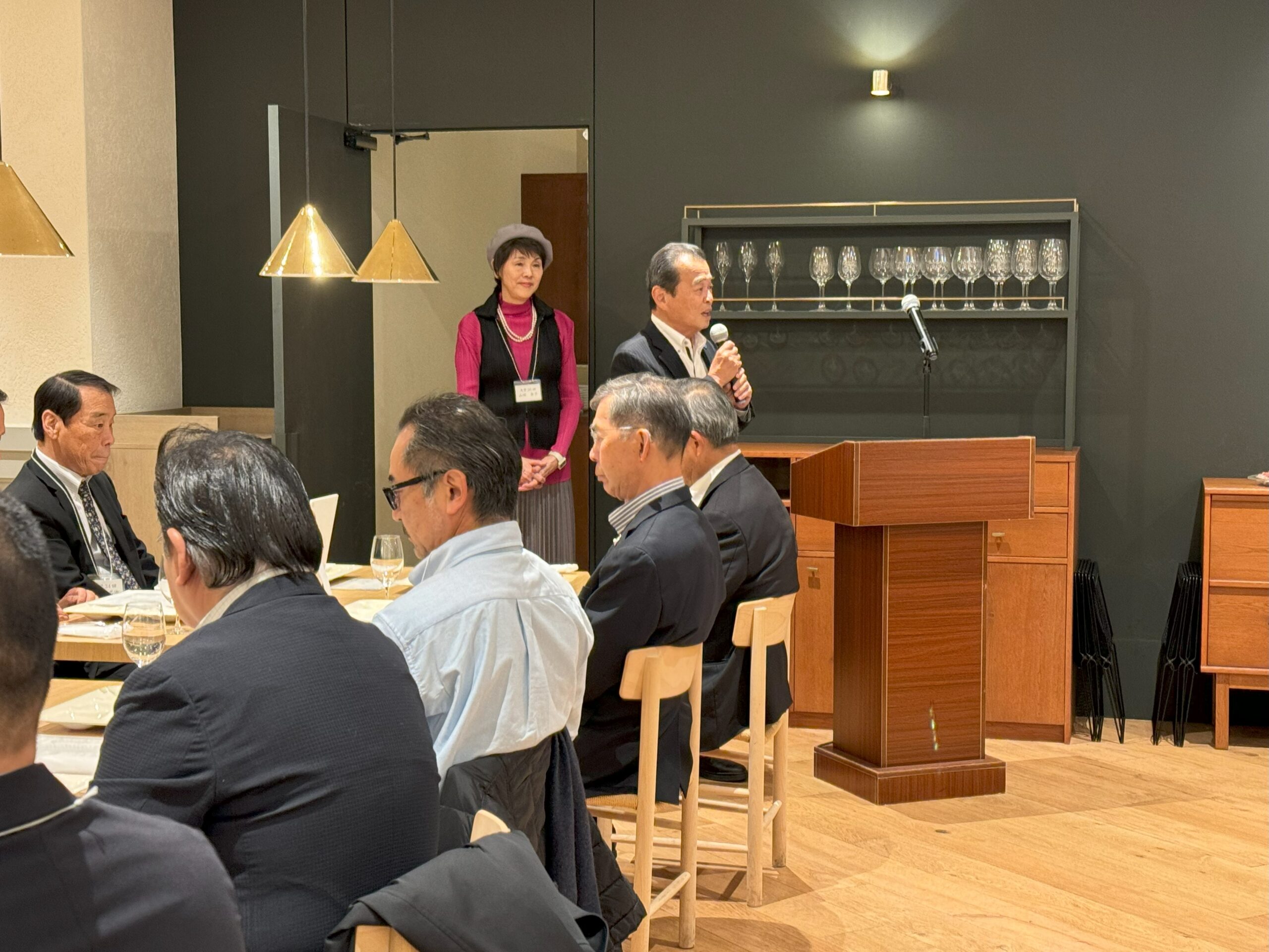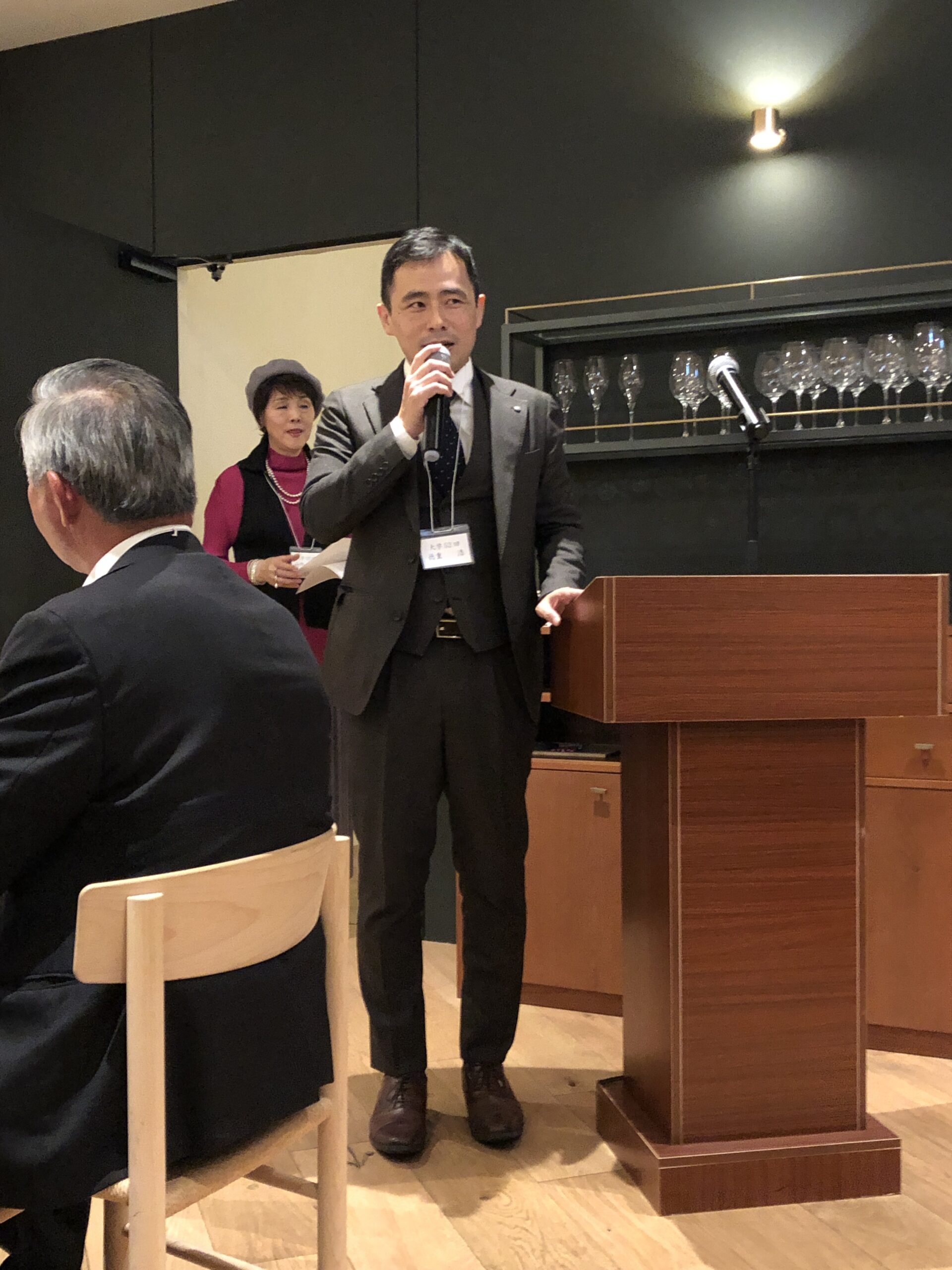 今井俊朗松山支部長の開会の挨拶の後、松山三越の店長に就任された近藤良一氏(大41)による