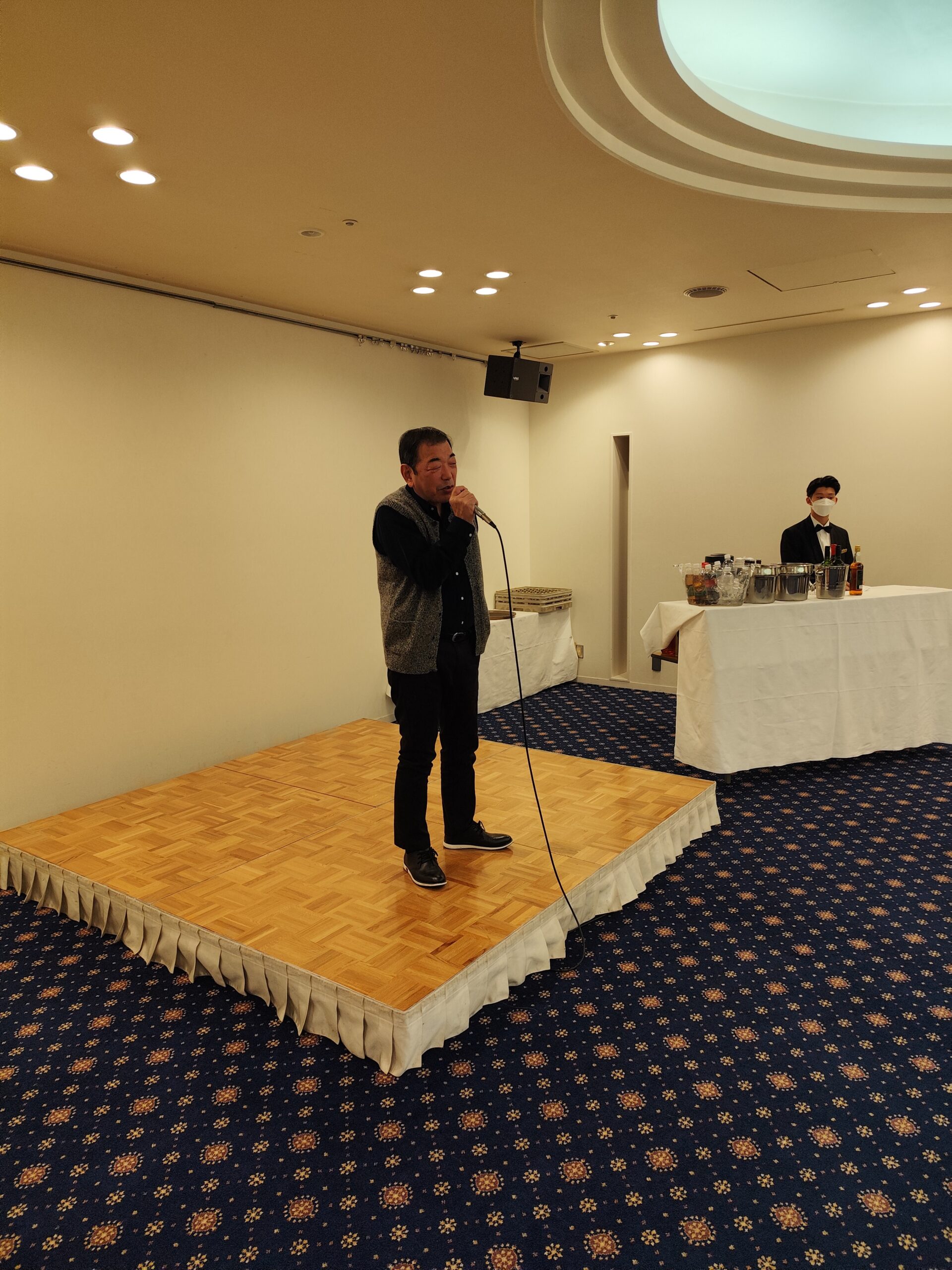 そして会長さんからのリクエストもあり、こちらも毎年恒例の詩吟を宮田先輩に披露していただきました。いざ詠い始めると会場の空気が静まり、熱気のこもった声に全員が引き込まれていきました。
